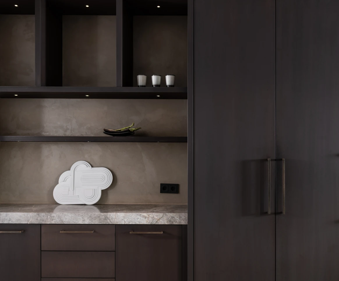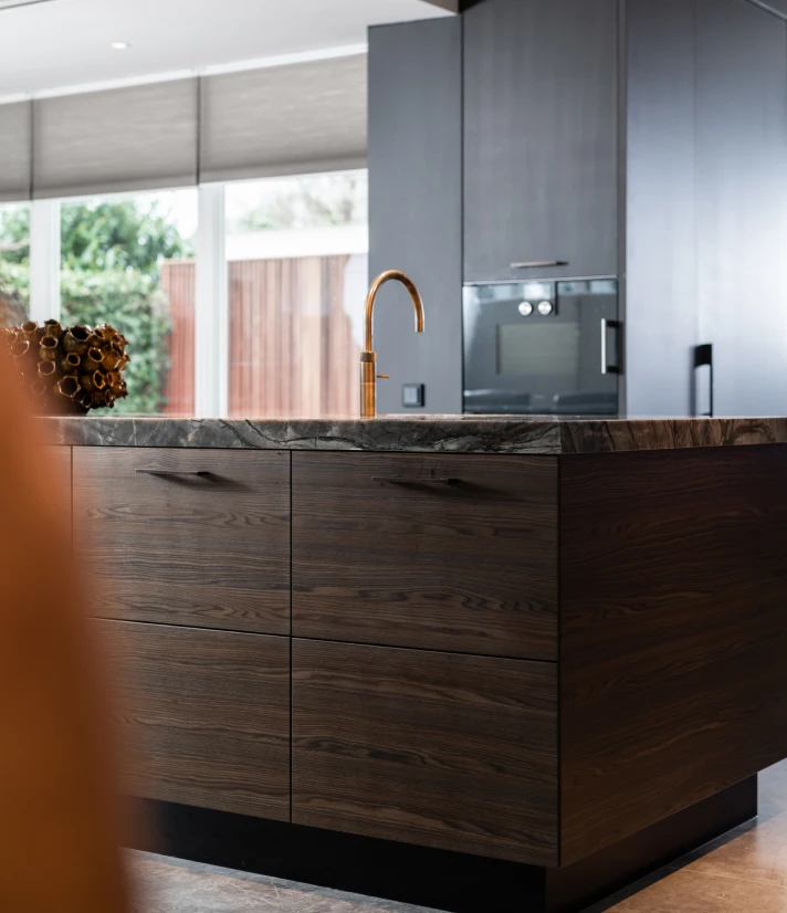 Elke lijn, elke textuur en elk materiaal is bewust gekozen om zowel praktisch als visueel sterk te zijn. We kijken hoe licht door de ruimte beweegt, hoe kleuren de sfeer bepalen en hoe elementen reageren op hun omgeving. Dit vertaalt zich in een high-end keuken waarin alles samenkomt en klopt.