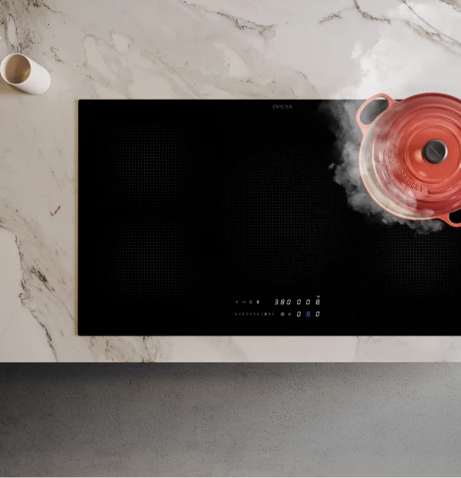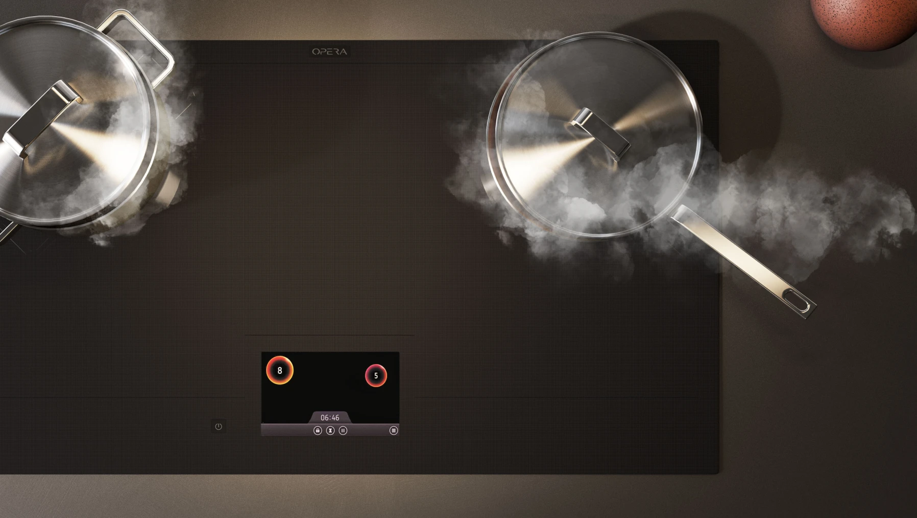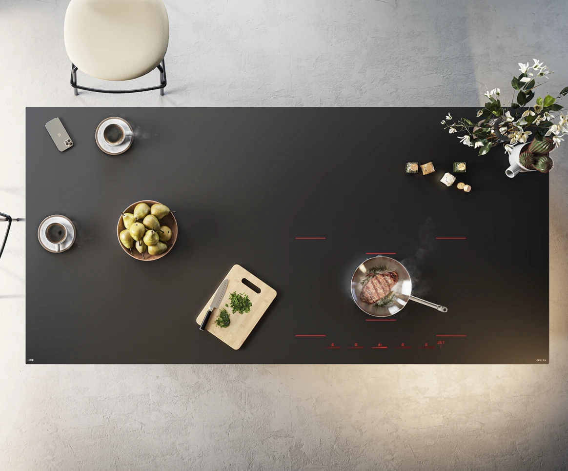 Het geavanceerde kooksysteem van Opera Nivel bestaat uit vijf inductiezones, met vier zijzones die gebruikmaken van de bridgefunctie en een grote centrale zone. Deze opstelling biedt flexibiliteit en maakt koken op maat nog meer mogelijk. De gebruiker kan namelijk de kookplaat aanpassen aan zijn of haar specifieke behoeften. Qua materiaal is Nivel volledig vervaardigd uit glaskeramiek, wat zorgt voor een hoge weerstand tegen krassen en (vinger)vlekken.