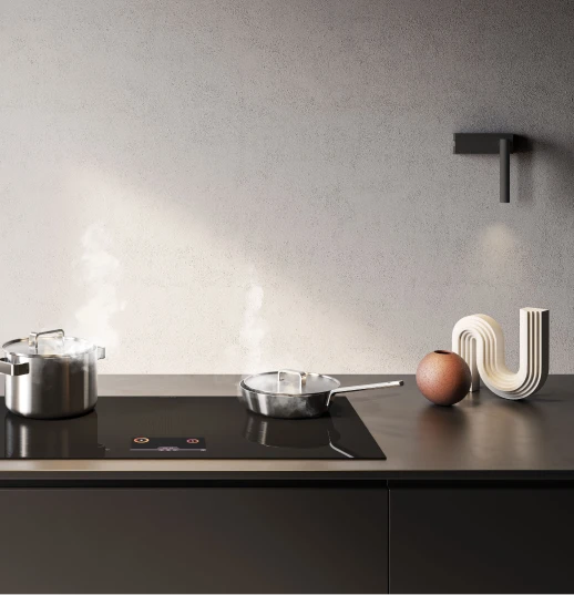 Het Opera Materia inductie-oppervlak combineert geavanceerde technologie met minimalistisch design. Dit innovatieve werkblad is niet alleen een strak vormgegeven oppervlak, maar ook een volwaardig inductiekookveld – volledig geïntegreerd in het keukenblad zelf. Koken en vormgeving gaan naadloos in elkaar over. Het resultaat: een verfijnde, greeploze look zonder zichtbare kookzones. Ideaal voor wie houdt van rust en luxe in de keuken, zonder concessies te doen aan functionaliteit of performance.
