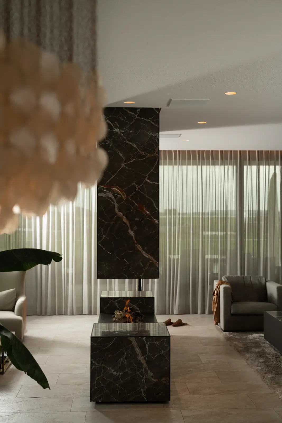 De woning, gelegen op een unieke locatie aan de haven van Warmond, vormde het perfecte canvas voor dit project. De klant wenste een keuken die aansloot bij het interieur. Naast de keuken hebben we ook het volledige meubelwerk ontworpen en een sfeervolle gashaard geïnstalleerd.